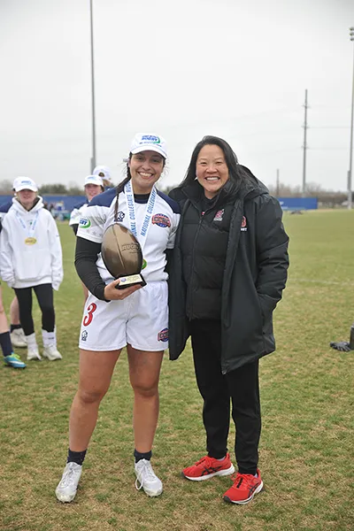 Against Upstate New York, the Great Waters team pulled off a second-half comeback to earn bronze. After a season-ending injury in the fall, the University of Chicago’s Grace Hogue seemed all the way back, contributing heavily in attack. University of Wisconsin Platteville’s Ali Risley scored GW’s second try to secure the 10-5 win.